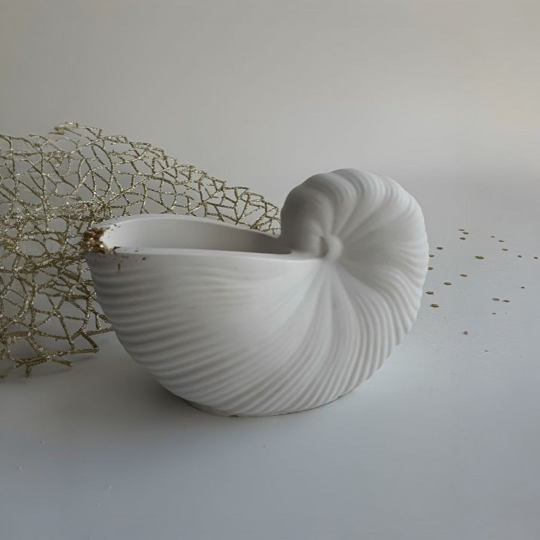 1. Caracola de Mar Jumbo hecha en concreto marmolizado (12.5 cm largo x 8 cm alto x 7 cm ancho).