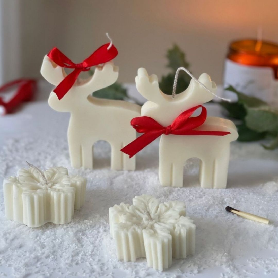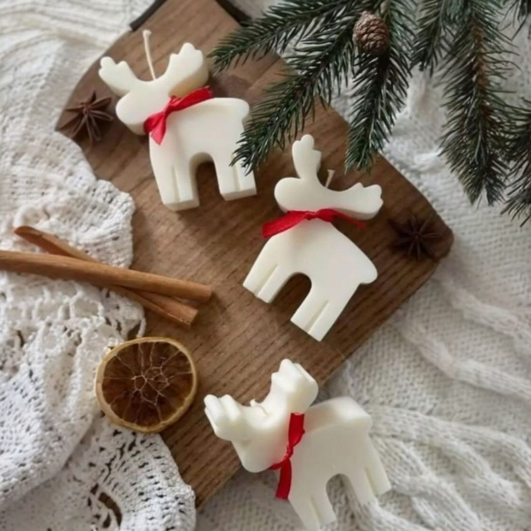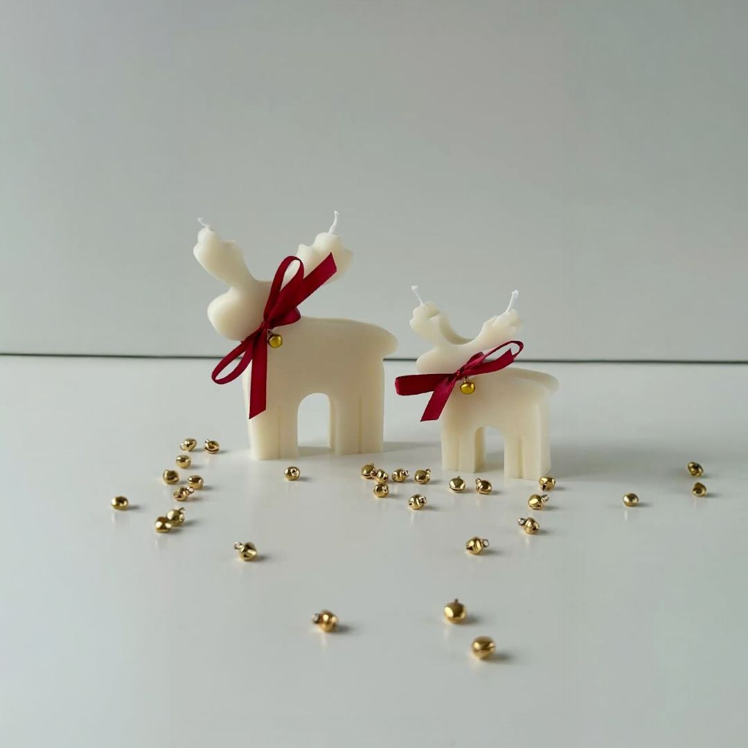 Vela Reno de Navidad Midi hecha en cera de vegetal de soya (10.5 cm alto x 9 cm ancho).
