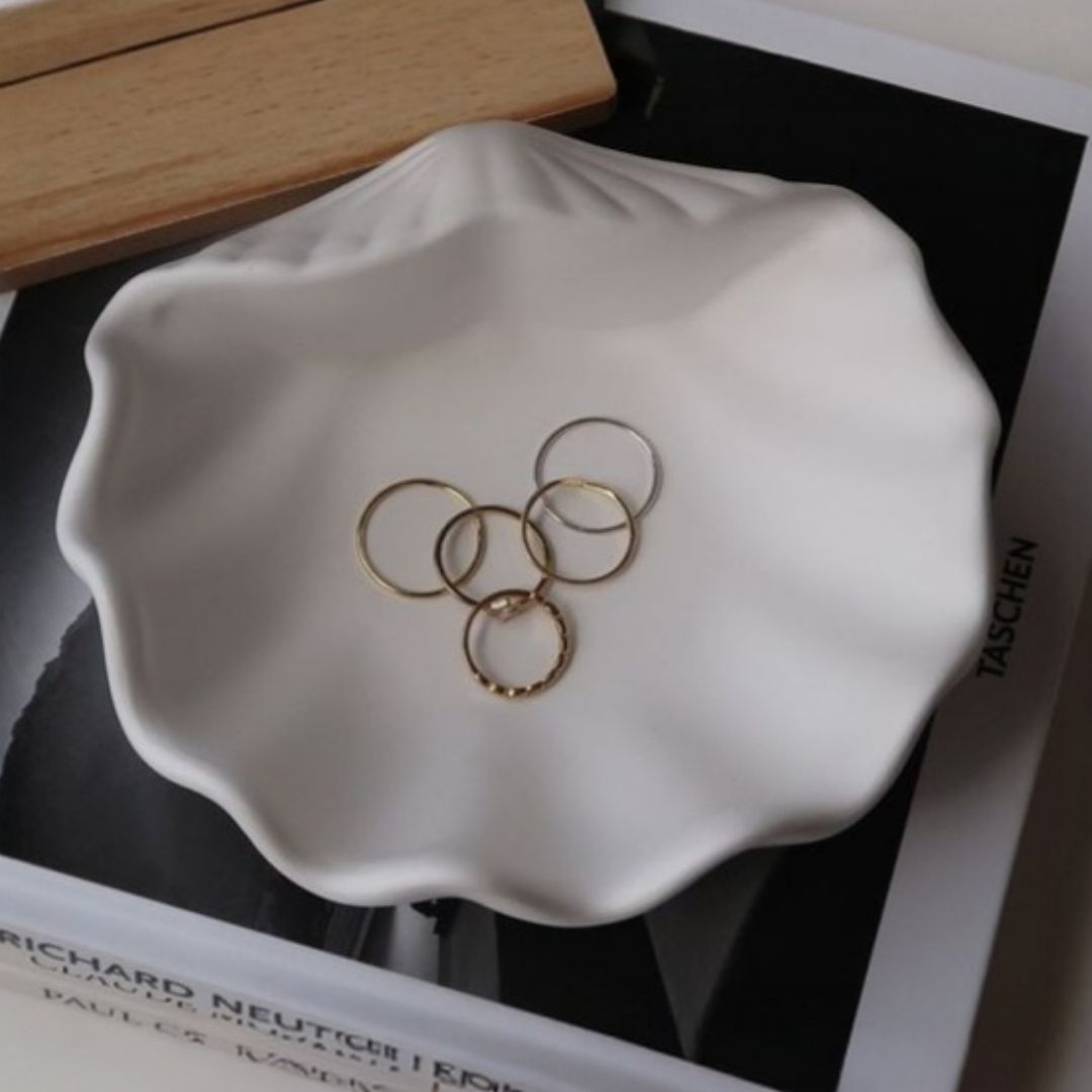 1. Seashell ( Concha de mar) L hecha en concreto marmolizado (15.5 cm largo x 14 cm ancho).