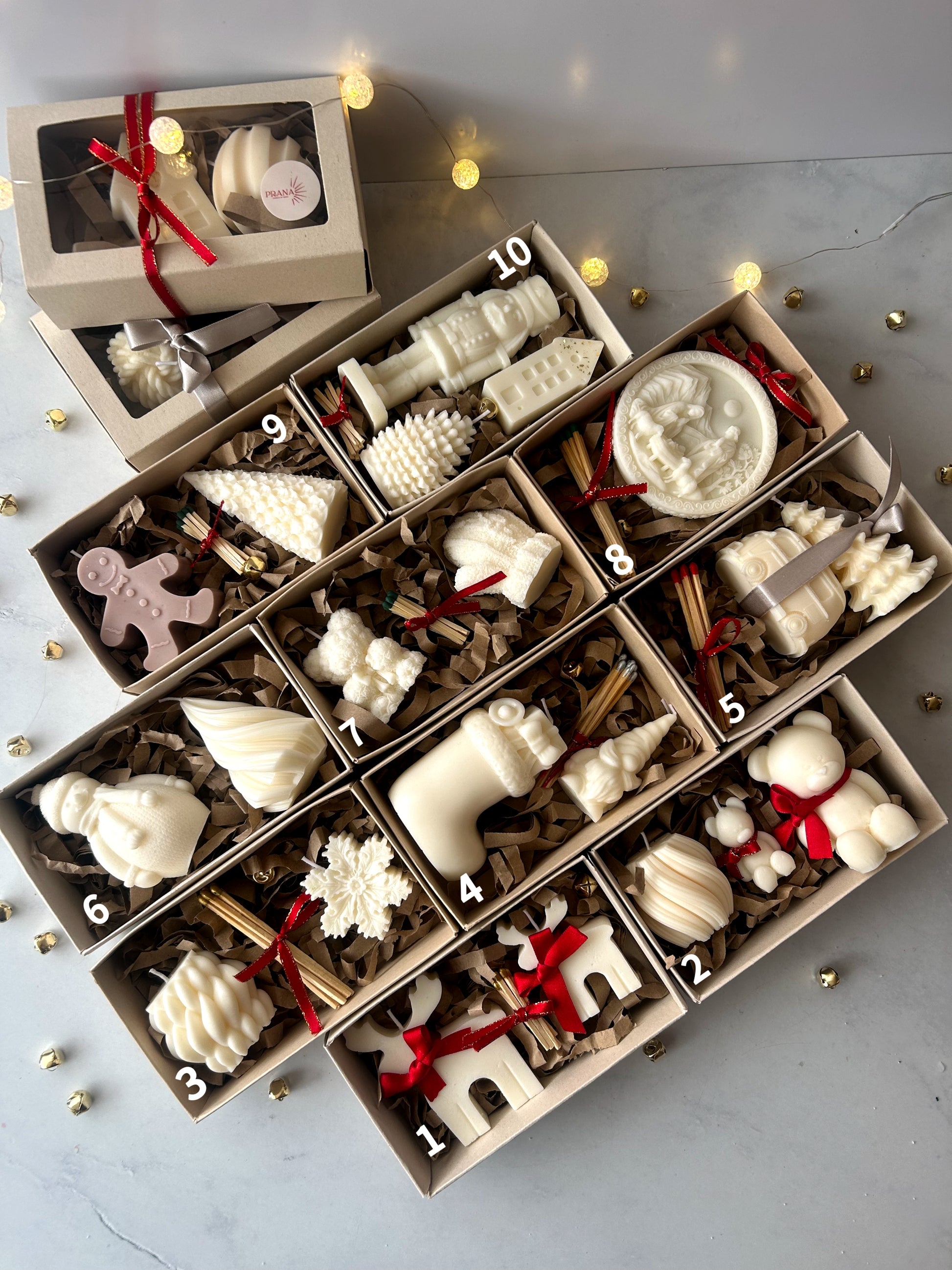 4. SET MINI REGALO 4: Vela Bota Navideña (9.5 x 7 cm), Nomo Petit (8 x 3 cm) y Fósforos de