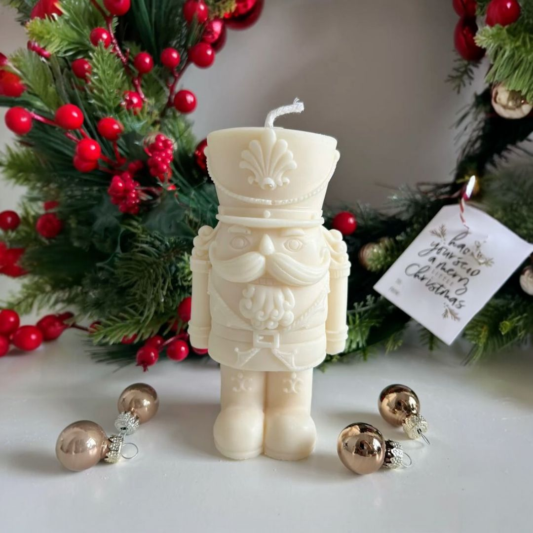 Vela hecha en cera vegetal de soya (13 cm alto x 8.5 cm ancho).