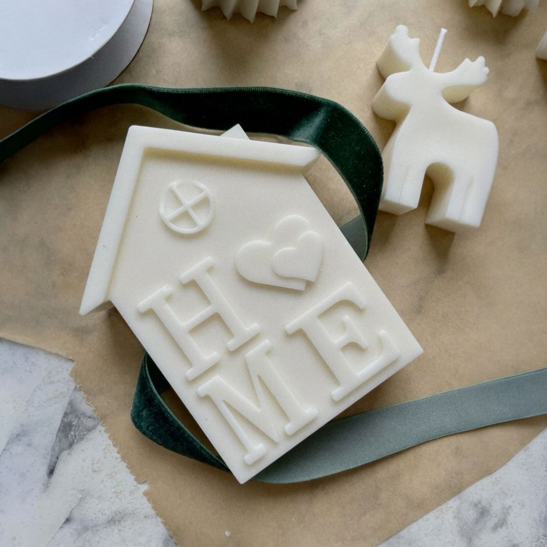 Vela Home hecha en cera vegetal de soya (14 cm alto x 11.5 cm).